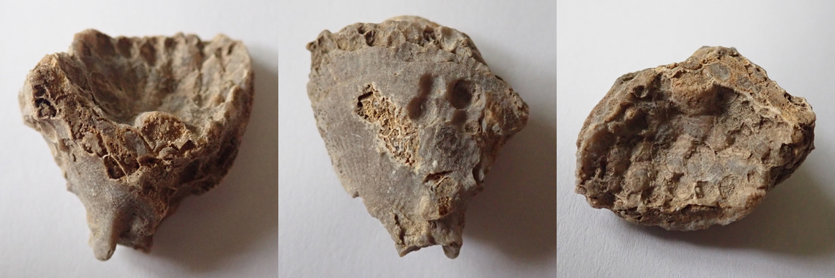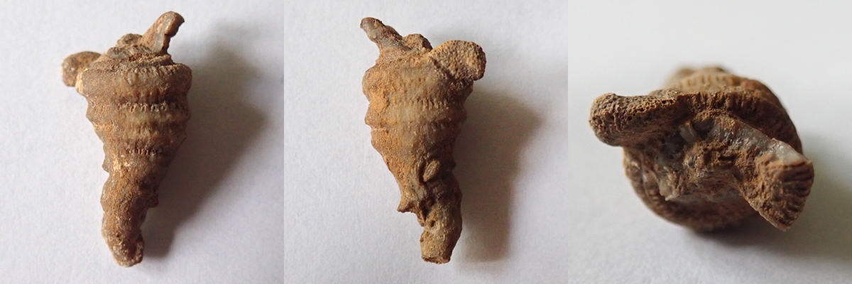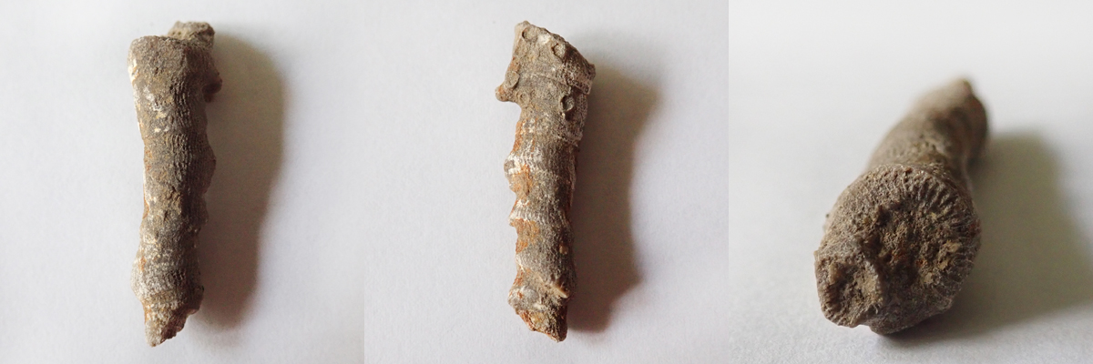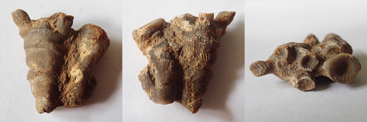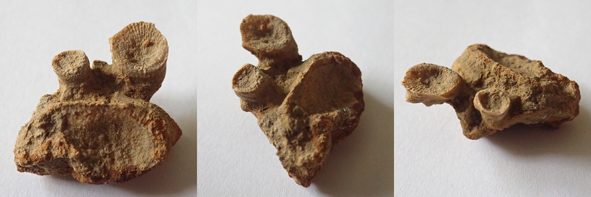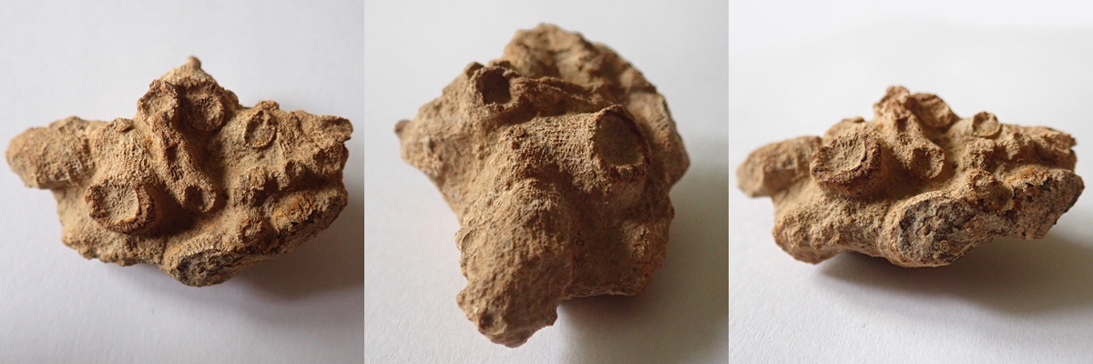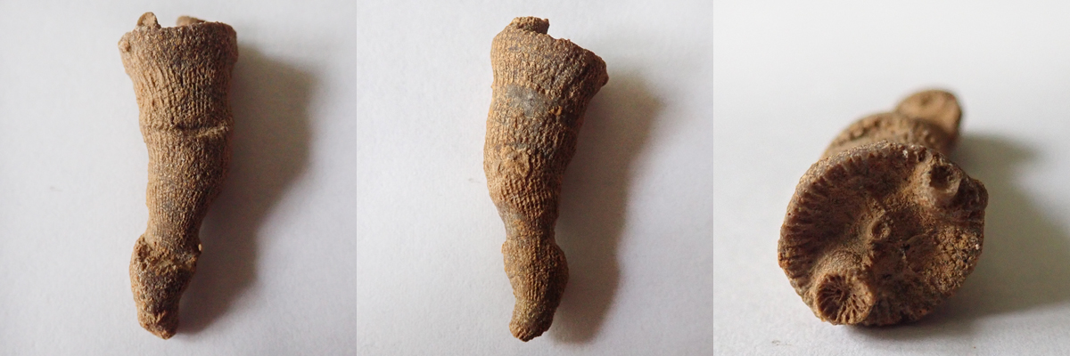 Na dvou nálezech z Kouřícího lomu (68 mm a 53 mm), které jste nyní shlédli, nehledě na to, že jsou ty nálezy extrémně zvětralé, je krásně vidět komplikovaný systém "kořenového úchopu" k podloží, které bylo často problematické. Koralit si tak vytvořil sekundární sloupce, chcete-li kořeny, ale to není úplně přesné, nebyla to rostlina, kterými se podpůrně byla schopna fixovat k podloží.