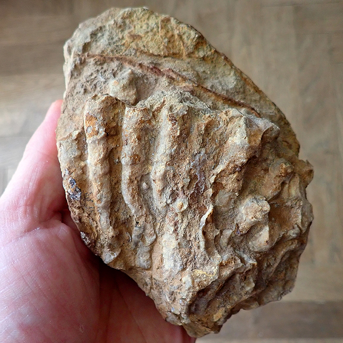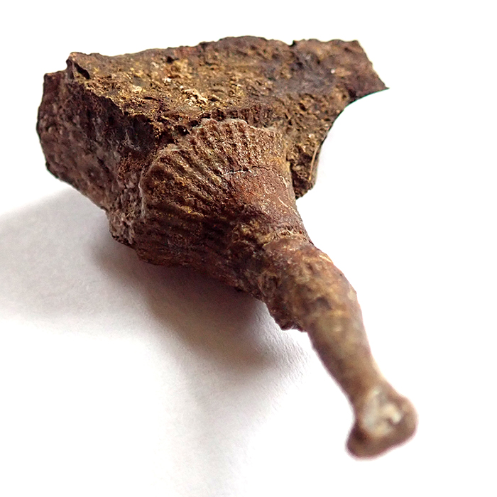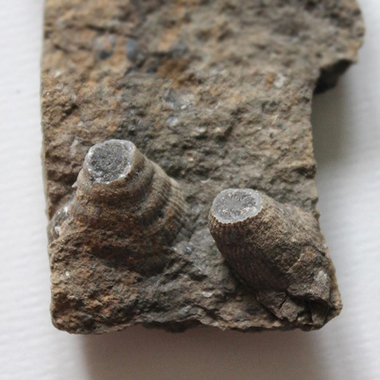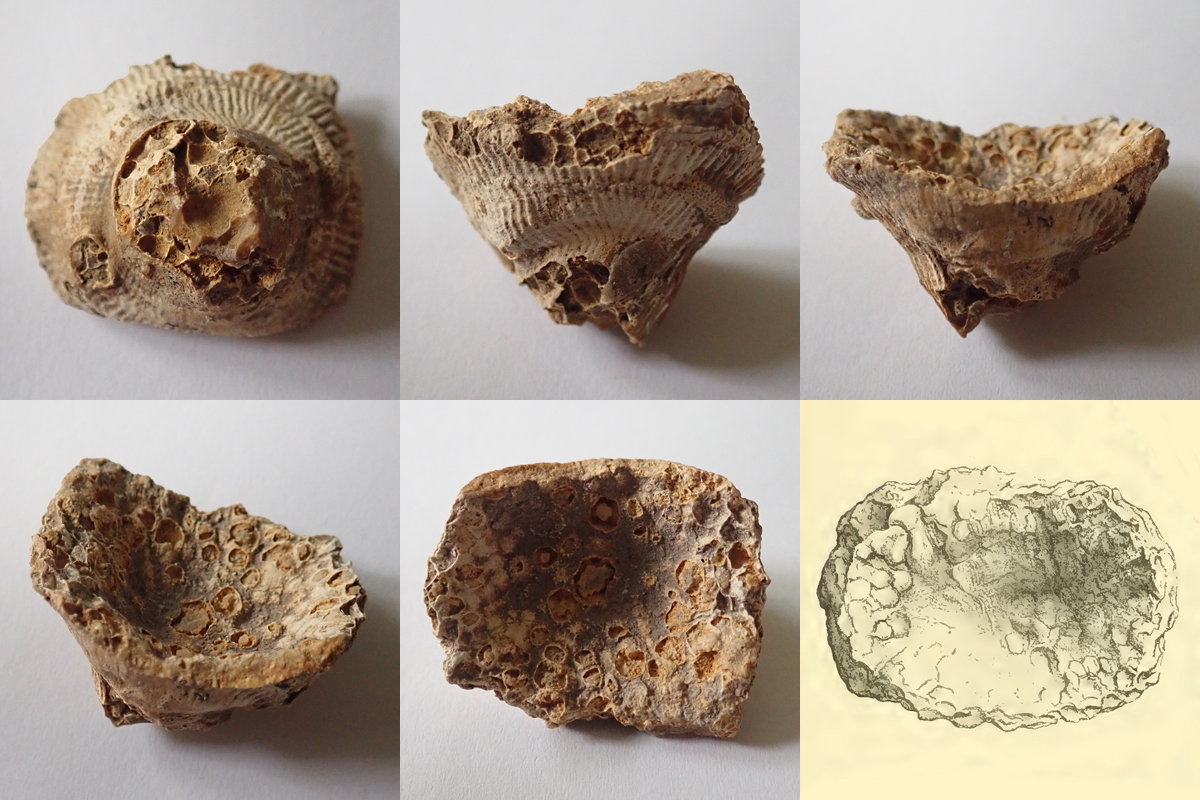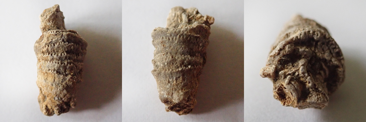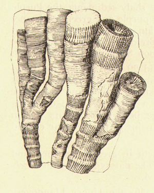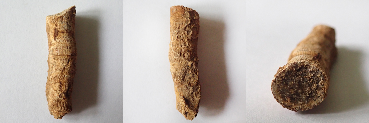 Na dvou nálezech z Kouřícího lomu (68 mm a 53 mm), které jste nyní shlédli, nehledě na to, že jsou ty nálezy extrémně zvětralé, je krásně vidět komplikovaný systém "kořenového úchopu" k podloží, které bylo často problematické. Koralit si tak vytvořil sekundární sloupce, chcete-li kořeny, ale to není úplně přesné, nebyla to rostlina, kterými se podpůrně byla schopna fixovat k podloží.