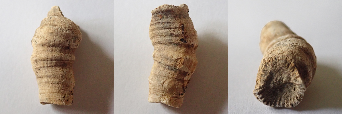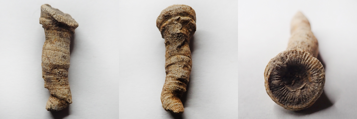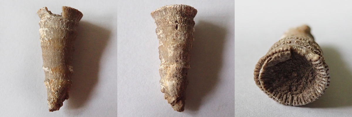 Velmi vzácný nález solitérního rugozního koralitu, který v řezu nenese žádné stopy radiálního uspořádání sept.